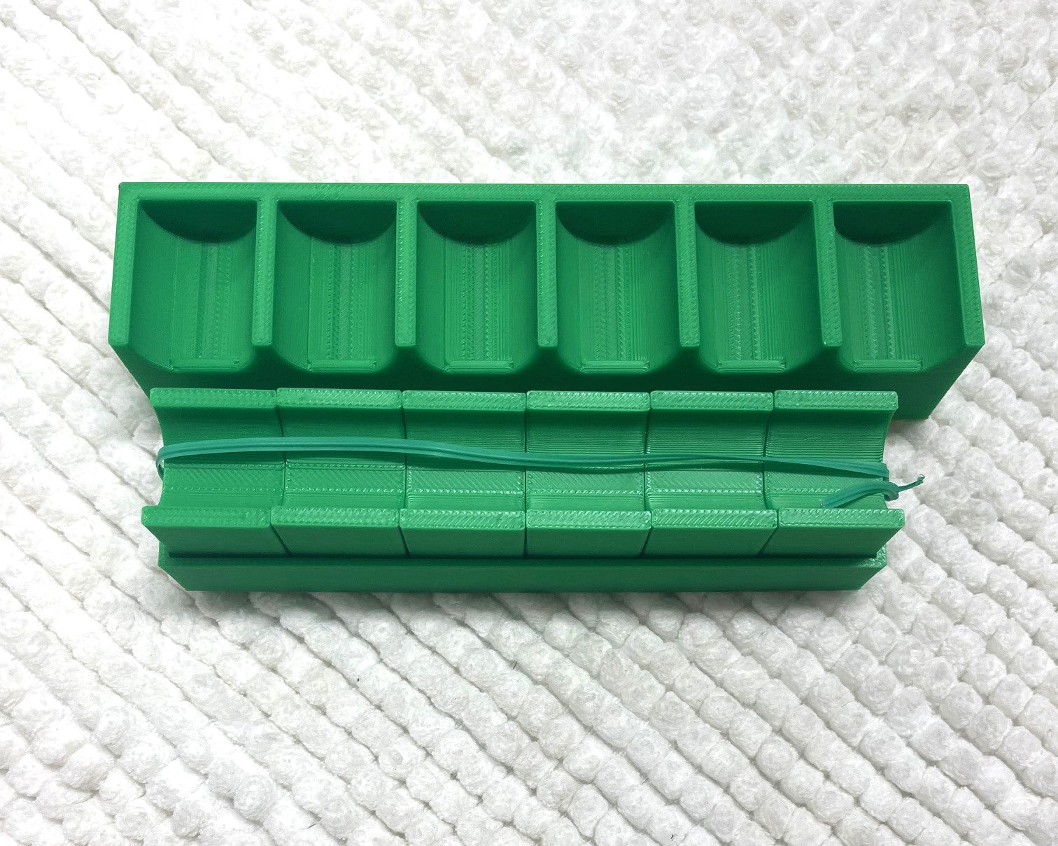 Toolbox drawer organizer for 3/8" drive rachet extensions in the color Green.