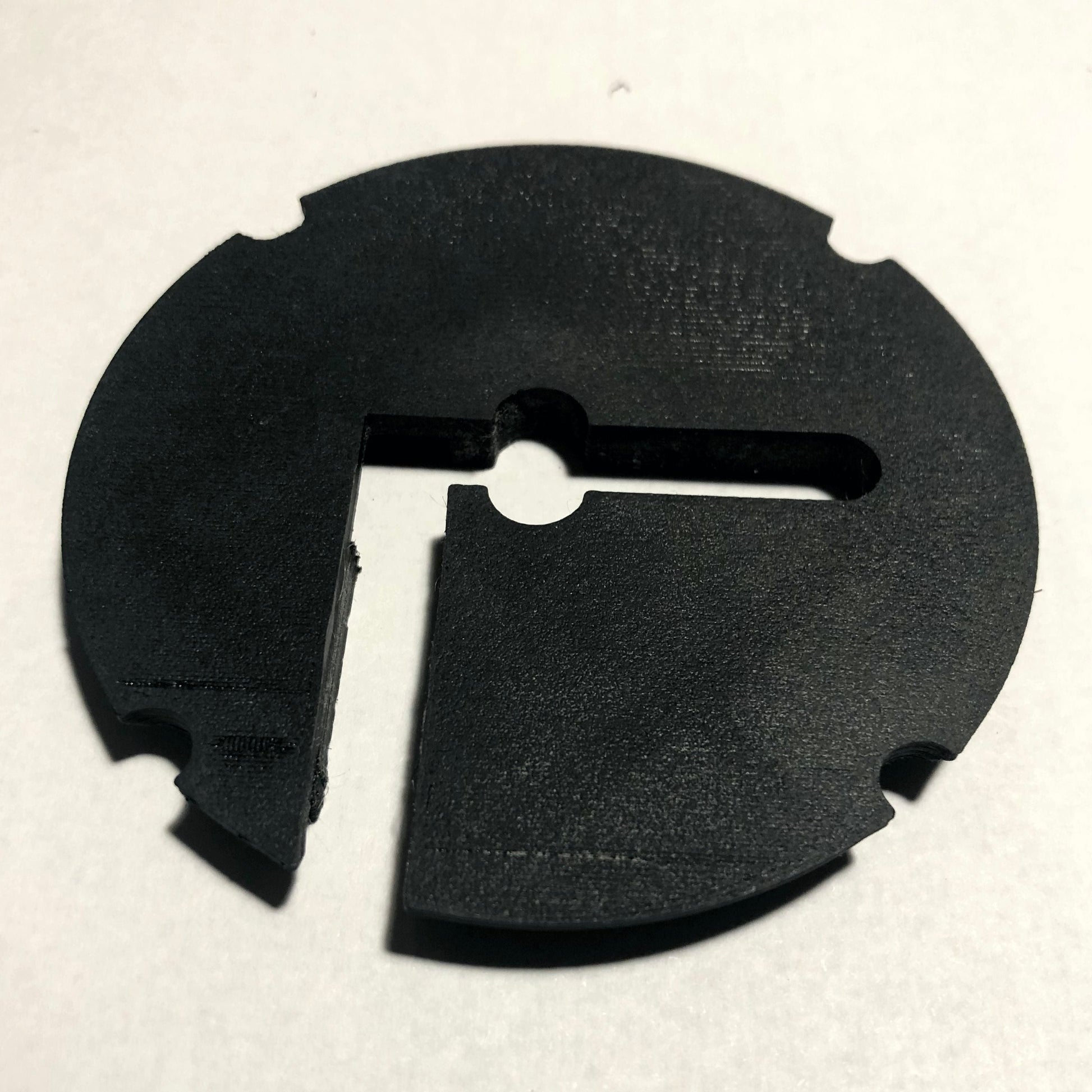 These are Scroll Saw Mount Inserts the blade passes through. They have been 3D printed and fit any saw with the same width as the 3.174 inch or 80 mm diameter at the top. These were made for a Central Machinery 16 in variable speed scroll saw to replace the one that comes with the saw. A customer had need for the insert with a bevel as you can see in the photos.