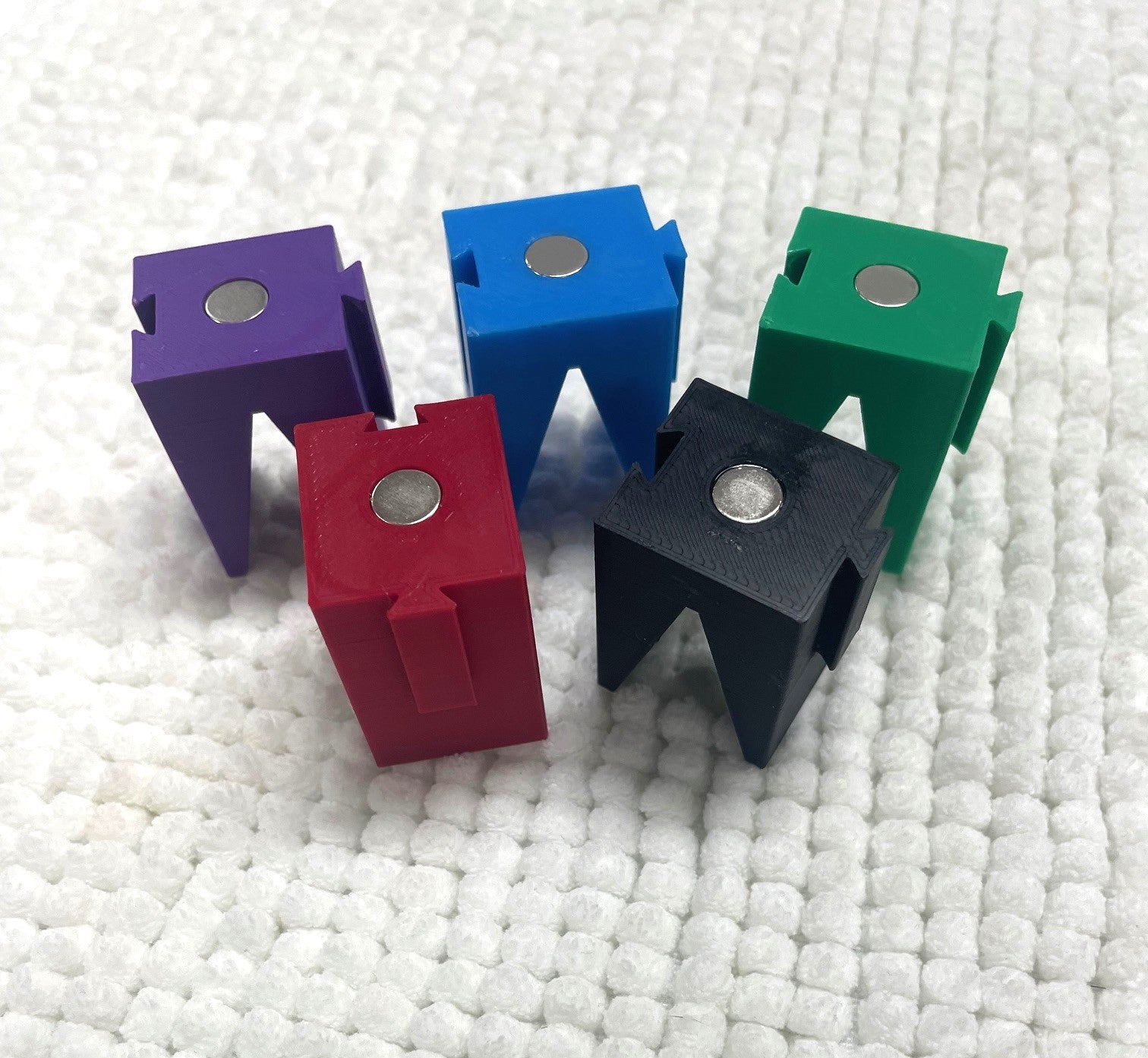 These have a magnet in the base and will hold even through a drawer protector. The pictures are a real customer that ask me to make these for his toolbox. The size is 1 inch long and the last piece will be 1/8 inch longer. (5 pieces would be 5 1/8 inches, 7 = 7 1/8 inches) each one is 7/8 inch wide and 1 1/2 inches tall.