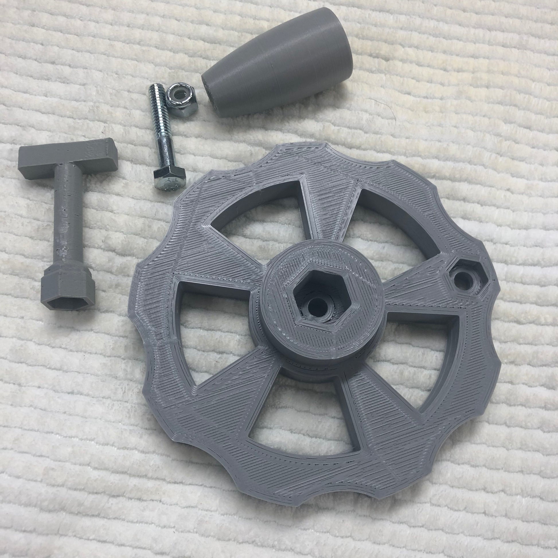 These were requested by a customer who has a Radial Arm Saw from Craftsman. The handle wheel has been beefed up more than the original adjuster handle that came on the saw.