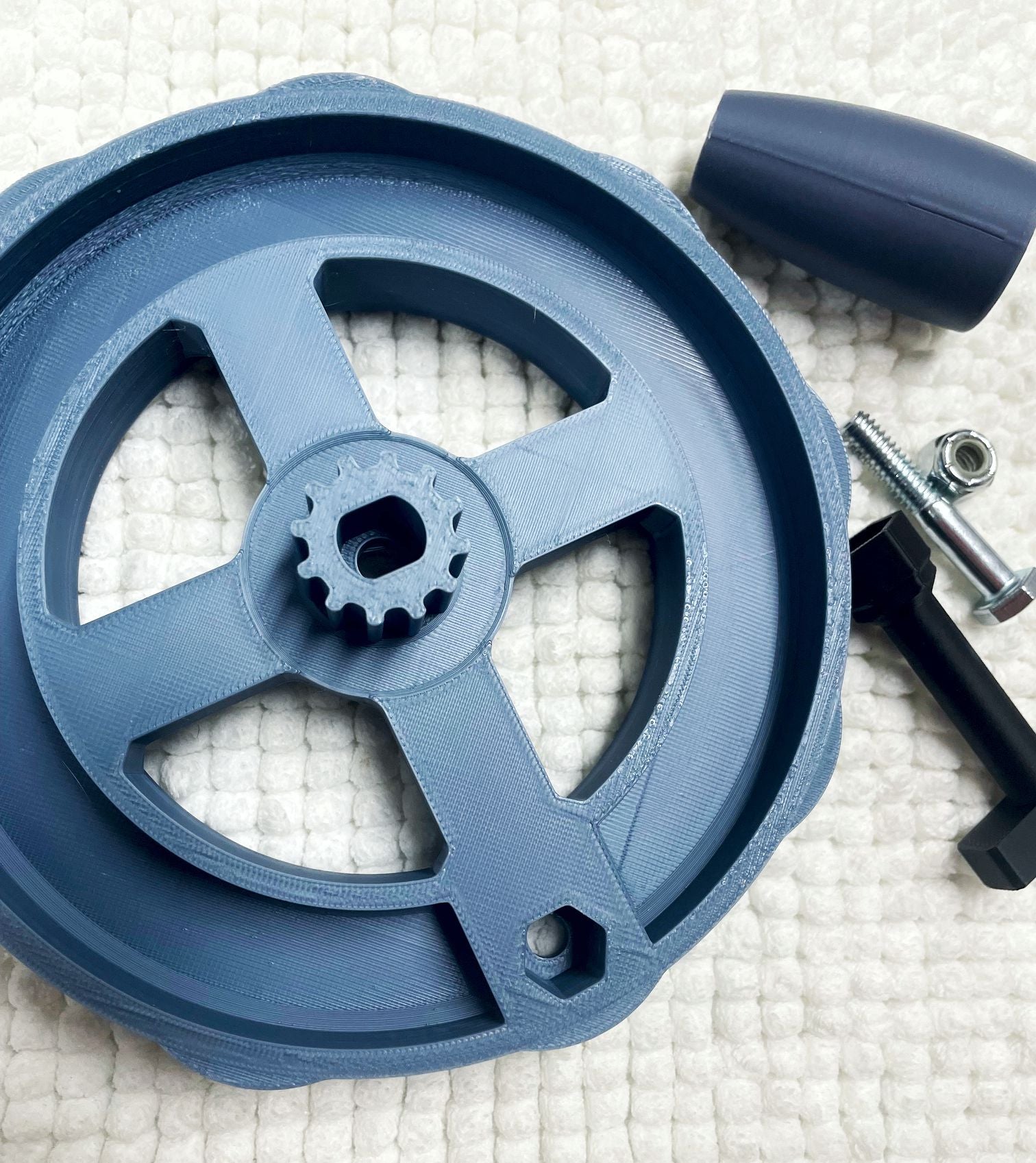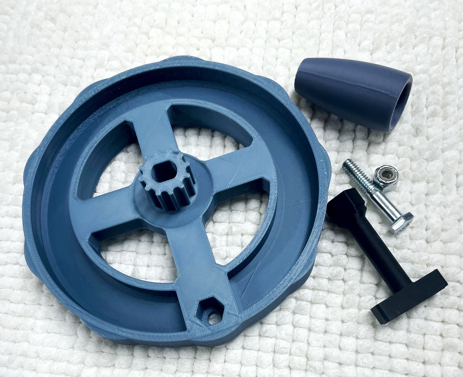 If you are replacing your adjuster handle, now is the time to blow out or brush out sawdust and lubricate all moving parts. A broken hand wheel may be an indication of a stuck, bent or dry part.