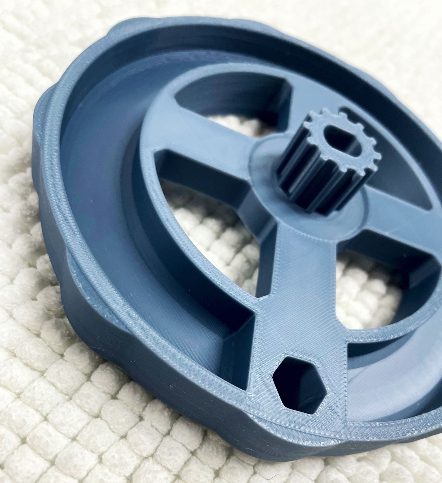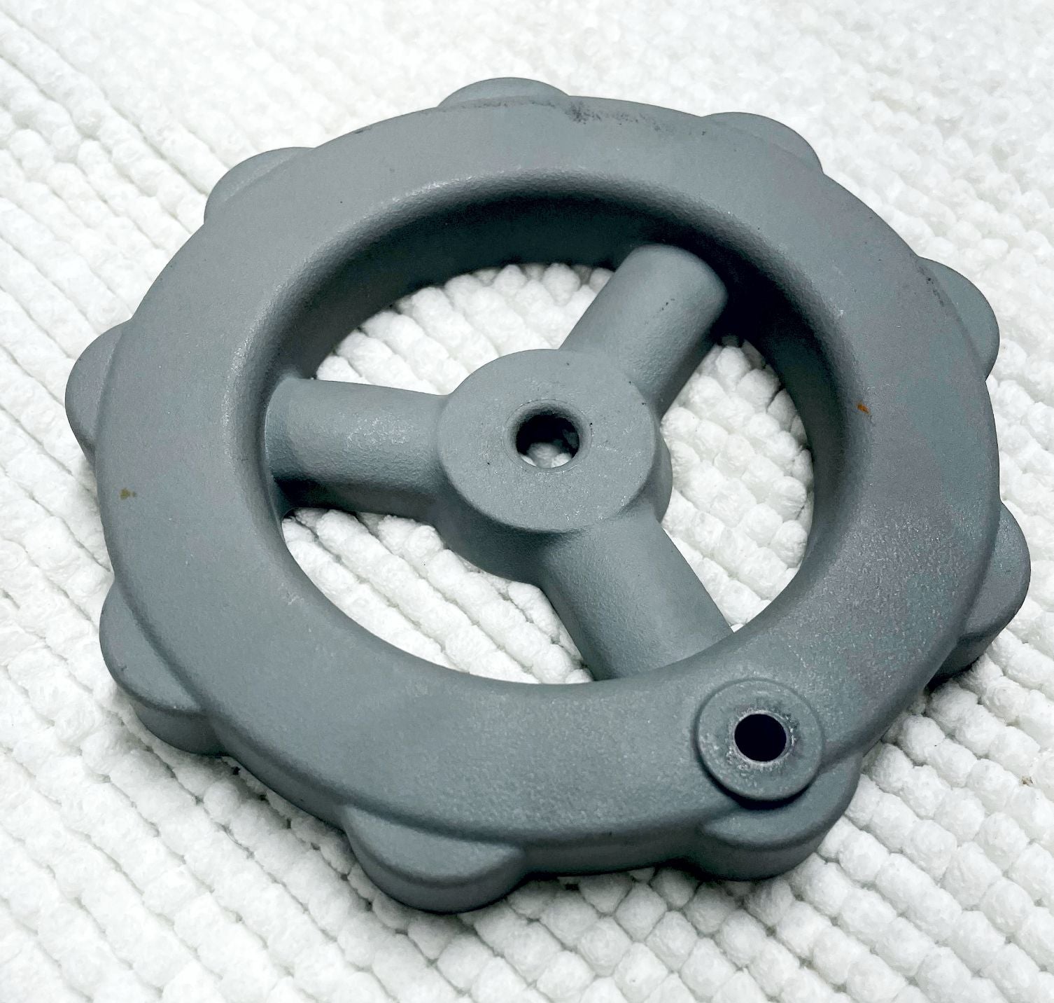 Was asked to make one for a customer and he sent the original hand wheel that is in the photos. The part has been fit tested and will replace the original part. The diameter is 5 1/2 in, the height is 1 1/2 inches without the hand grip spinner. The hand spinner is 2 inches in length and makes the total 3 1/2 inches in height.